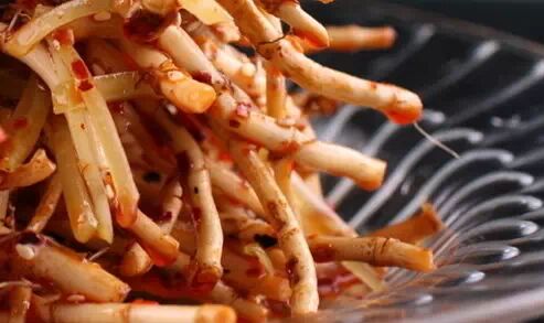折耳根学名"鱼腥草",是中国药典收录的草药之一,具有抗菌、抗病毒、提高机体免疫力、利尿等作用。最常见的吃法就是凉拌,用酱油、辣椒和其它佐料凉拌。对于这道菜,贵州人和四川人吃的也有不同,四川人爱吃叶子,贵州人爱吃根部,就是比较硬的部分,嫩的嚼着带着脆劲儿,老些的嚼着要废些气力,几个人一桌吃折耳根的时候别有趣味,大家一同嚼着菜色并不美观的草根,同时嘴里发出嗑嗤嗑嗤的声音。折耳根算是当地人的一种家乡或者成长地的口味记忆。可在外地人吃来却是各种滋味,有人认为其味"腥",还有人说"像肥皂水味",反正绝对跟美味不搭边。