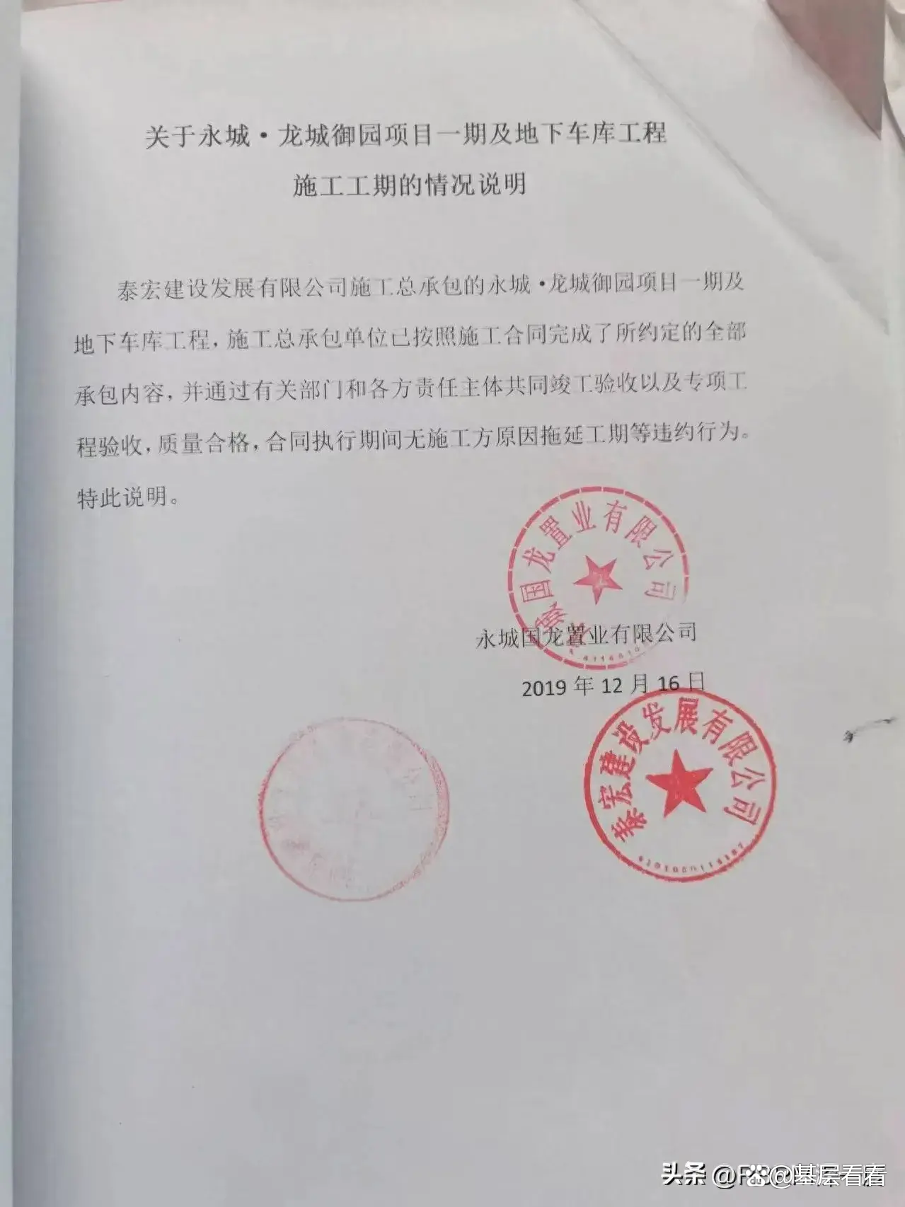 2 V; t( [* R5 B' @& U& e2013年4月,泰宏建设发展有限公司(下称:泰宏建设)中标“龙城御园商品房建设项目”,与河南省属国企永城国龙置业有限公司(下称:国龙置业)签订了《永城·龙城御园》工程施工承包合同。