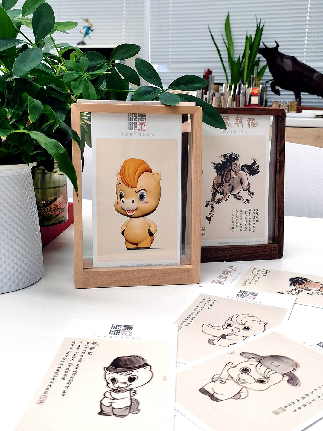 陈湘波在艺术领域造诣深厚,其作品风格多元,涵盖传统工笔、写意画、工业水墨等。在创作中,他深入研究马在中国文化中的象征意义。他以精湛的技艺,将马的各种姿态栩栩如生地呈现在明信片上。将生肖文化与艺术创作完美融合,为传统生肖文化注入新的活力。今年以“啵啵马”为先锋,连同前几年的“啵啵虎”“啵啵兔”“啵啵龙”“啵啵蛇”所构成的“啵啵宇宙”,正是陈湘波艺术创作的最新航道。这些生肖系列的推出,并非对传统的背离,而是一次以数字时代的语法,重新编译华夏千年生肖密码的艺术实验。那些流淌于血脉中的文化记忆,被赋予了赛博世界的炫酷外壳、极致绚丽的视觉张力与充满生命力的弹性灵魂。“啵啵”二字,是心跳的拟声,是能量迸发的瞬间,是与你打招呼的异次元波频。