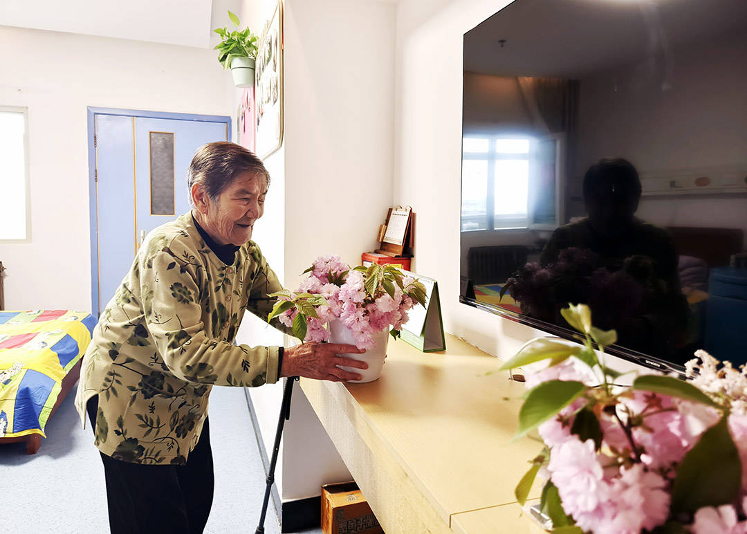 我们也不忘把春天搬进养老院的每一个角落。服务台的桌上,走廊的窗台边,都摆上了新鲜采摘的花朵,明黄的连翘、粉白的樱花、淡紫的丁香,相互映衬,格外好看。来往的老人走过,都会停下脚步,望一眼这娇艳的花朵,闻一闻淡淡的花香,脸上便会露出舒心的笑容。