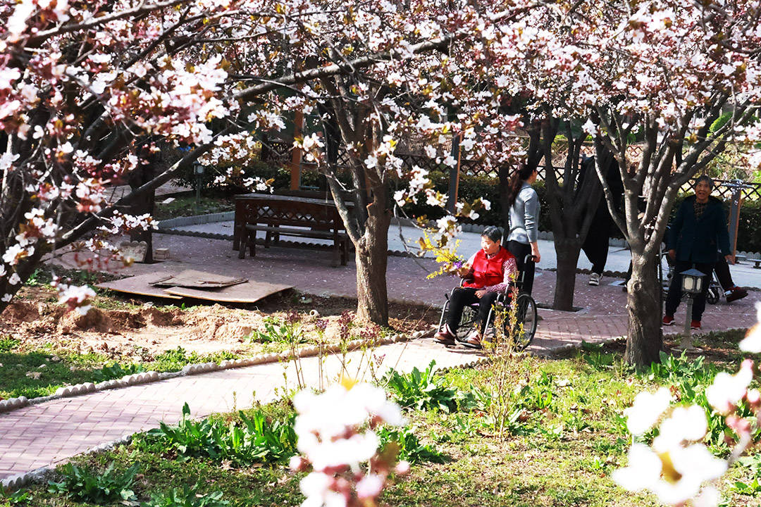 我们总想着,要把这满园春色,都送到老人们身边。天气晴好的日子,我们牵着老人的手,慢慢走出房间,去大院里、去公园、去菜园,赴一场与春天的约会。老人们的脚步或许迟缓,眼神或许有些浑浊,但当他们看到满院繁花时,眼角的皱纹里,都盛满了笑意,像孩童般,眼里闪着光。