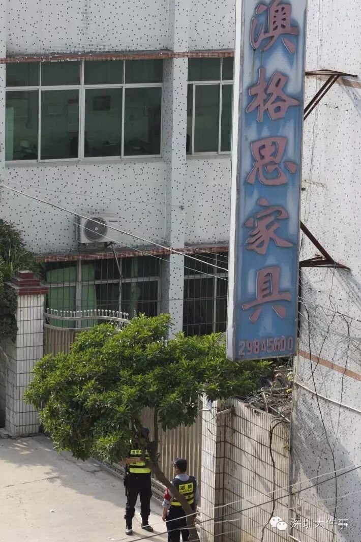 今天上午9时59分,龙华观澜惠民二路一家具厂内发生一起惨案,一名男子持刀捅伤三名女子后跳楼自杀死亡。