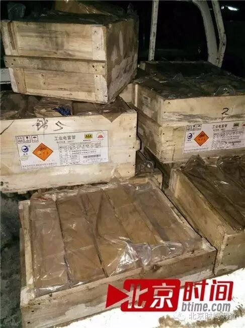 数十个装满“工业电雷管”的木箱 图/北京时间