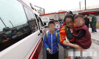 2男1女重伤,分送联合、大同等医院。伤者中年纪最长的是74岁,最小的2岁。图为事故现场。