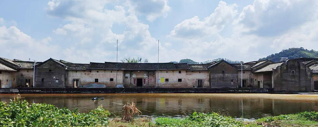 围龙结构彰天巧,宗族渊源溯汉唐。观其制处,精妙映穹苍,瑞霭盈庭兆永昌。三堂错落藏星纬,八横恢弘纳海沧。面积二万二千方,浩阔宏姿势莫量。建筑占地一万四千方,似繁花齐绽微风轻荡。木为骨,三合土为肌,灰墙黛瓦德誉旺。中堂主梁鎏金浮雕,麒麟端坐威仪显,祥瑞盈门福泽漾。二十八天井错落,三百房舍连通,走马廊旋威态显,采光通风德泽扬。六间书院,育才兴学,华笺雅韵绕雕廊。门前禾坪呈浩广,半月清池映日光。云天映照,生气涵养。