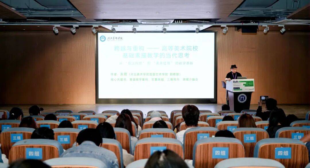 当日下午,河北美术学院造型艺术学院未君副教授在学者论坛发表题为《跨越与重构—对高等美术院校基础学科素描教学的当代思考》的主旨演讲。