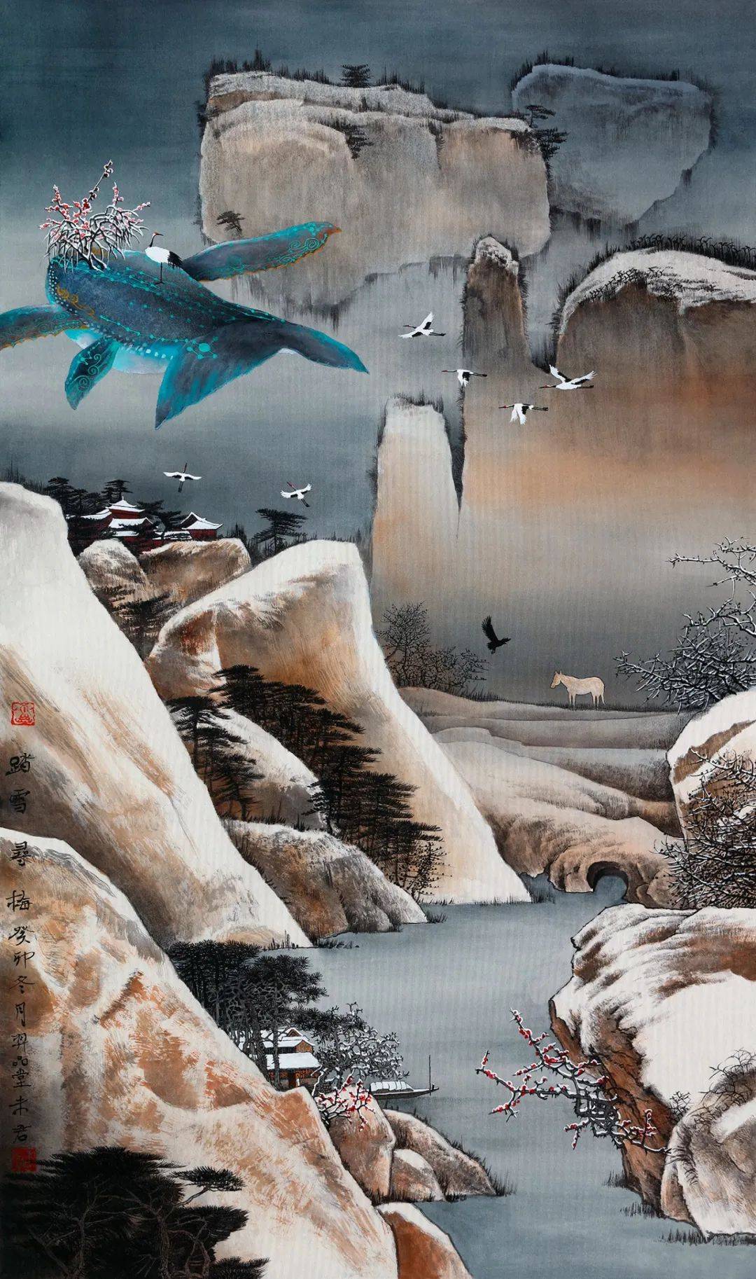 逍遥游 · 与鲲同游 | 66.5×50cm | 绢本设色 | 2023年