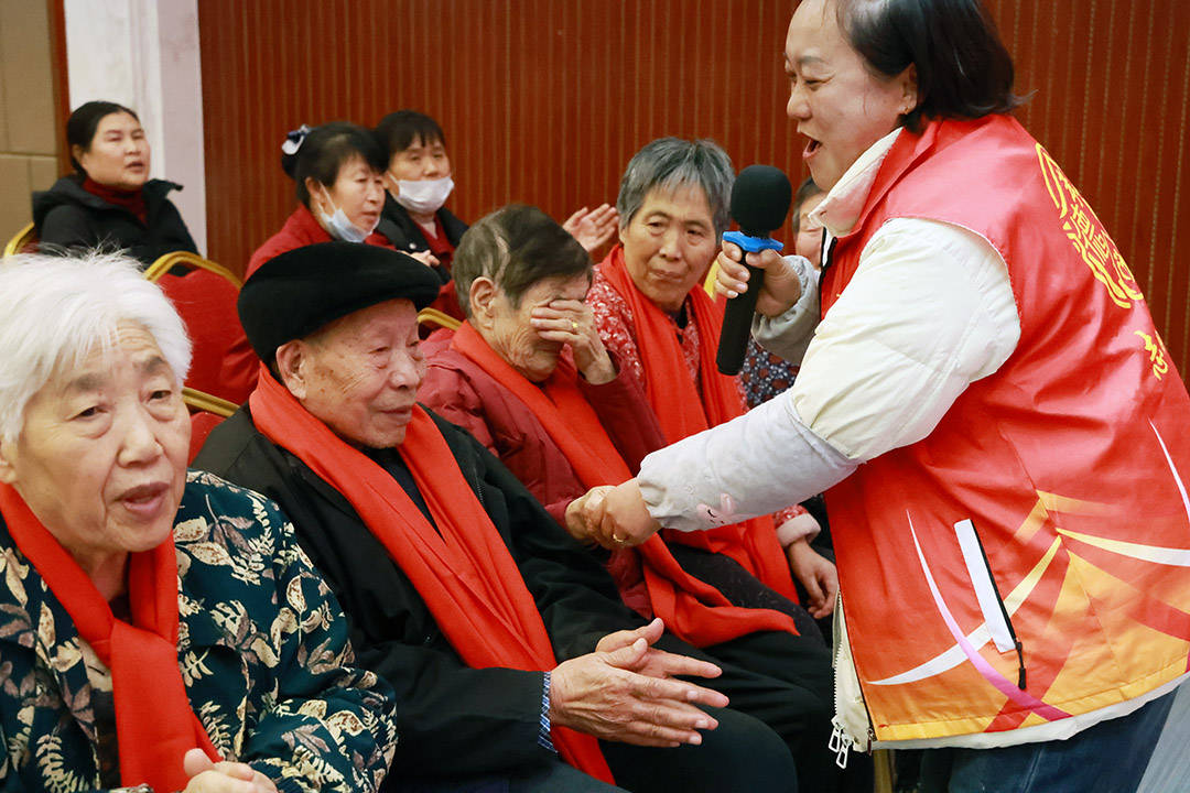 联欢会在主持人潘豆豆热情洋溢的开场词中拉开帷幕。为调动现场气氛,主持人邀请观众齐拍双手,并趣味科普:“鼓掌不仅能传递热情,更能刺激手部穴位、促进血液循环,堪称‘零成本养生法’。”这一互动瞬间点燃全场热情,掌声与笑声交织成欢乐的序曲。随后,德孝苑养老院院长马海菊致辞,她以“祥蛇摆尾辞旧岁,骏马扬蹄迎新春”为引,向莅临嘉宾致以热烈欢迎,向长期支持养老院发展的领导、义工及各界朋友表达诚挚感谢,并为院内长辈送上新年祝福。马院长回顾过去一年养老院在“尊老、敬老、爱老、孝老”理念下的服务升级成果,并透露新一年将引入中医养生项目、开展“六助”社区服务、拓展文化娱乐空间等规划,同时向活动组织者发出共建邀约,现场掌声经久不息。