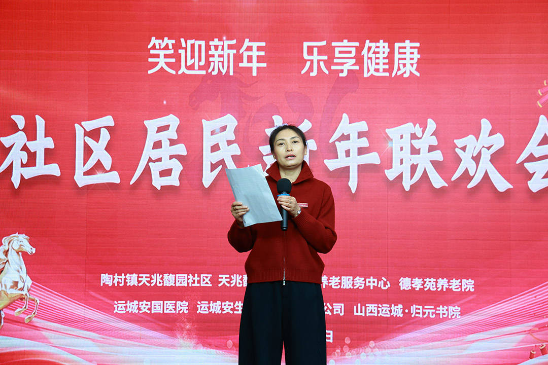 2025年12月27日下午,运城安国医院百合厅内张灯结彩、暖意融融,由运城盐湖区桃村镇馥园社区、馥园社区居家养老服务中心、德孝苑养老院、归元书院等单位联合举办的“笑迎元旦,乐享健康”社区居民新年联欢会在此温情举行。百余位社区居民、养老院老人与志愿者齐聚一堂,以欢笑传递温情,用活力共迎新年。