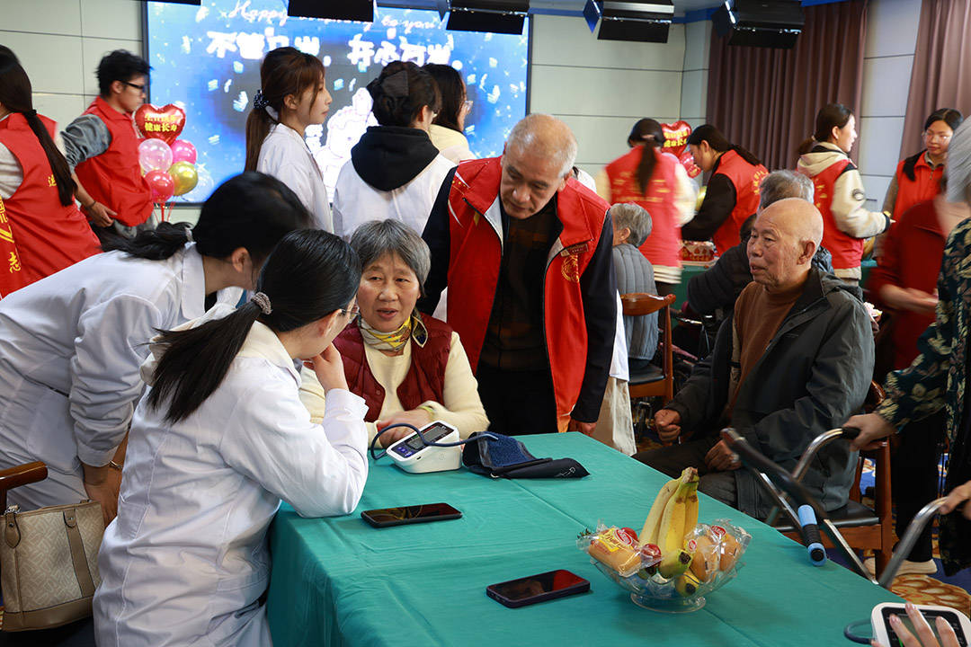 此次活动不仅有温情庆生,更添健康守护。来自运城职业技术大学健康学院的志愿者为长者们开展免费义诊,细致测量血压、血糖,耐心解答健康咨询,提供专业的养生指导与用药建议。