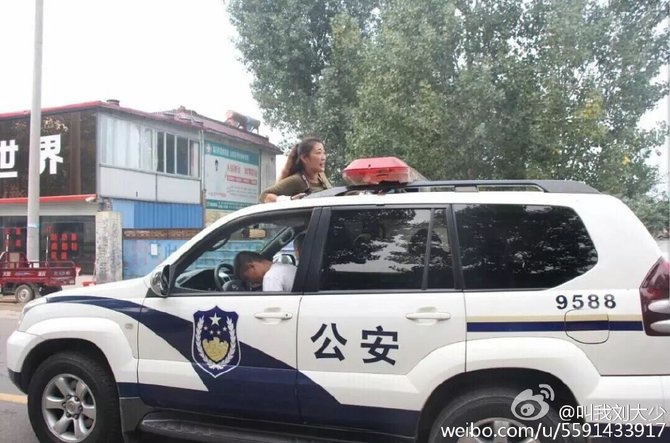 互联网上一张女子站在警车伸出半截身子“迎风自由飞翔”照片,引发网民质疑。