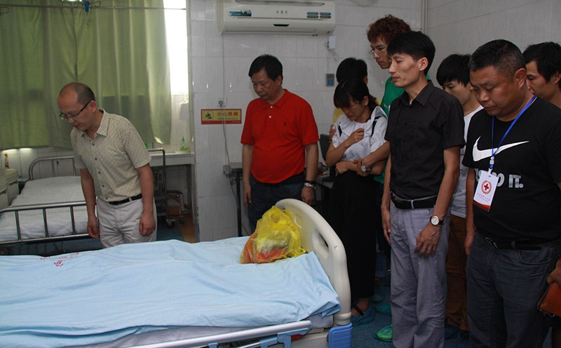 遗体捐献手续办妥后,宜春学院外国语学院、校团委、宜春市红十字会为钟善祺举行了简短的告别仪式。14时40分许,省红十字会带来的眼科专家从钟善祺的双眼成功摘取眼角膜,随后整理遗容,将钟善祺的遗体运往南昌。据省红十字会工作人员介绍,这是全省首例在校大学生遗体捐献。 7日晚,2014级英语2班举行钟善祺同学告别会,29名同学泣不成声……