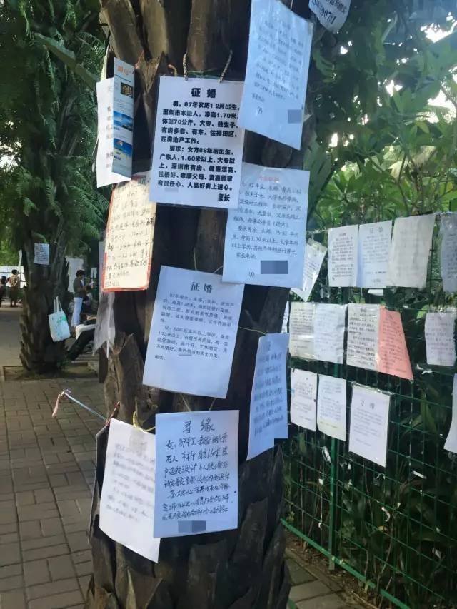 在莲花山相亲角,连树上都挂满了密密麻麻的征婚帖,有房、深户仍是最常见的字眼